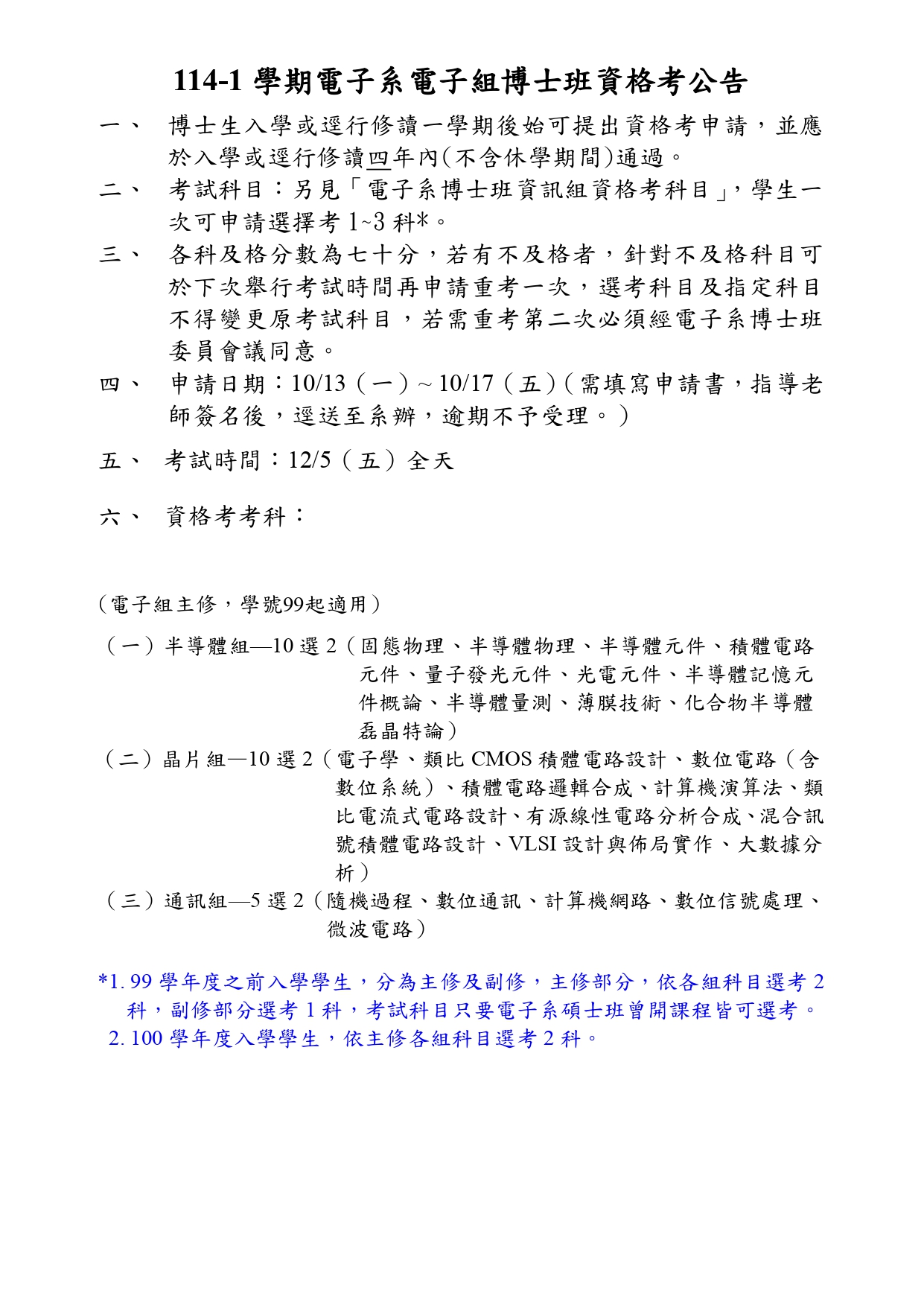 114-1學期電子系電子組博士班資格考