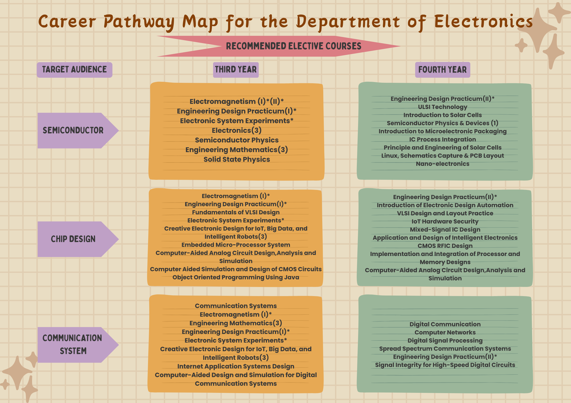 Our department aims to train high-tech professionals in electronic engineering, specializing in IC design and manufacturing, optoelectronic technology, multimedia communication, and AI-related applications. Join us and shape the future of technology!